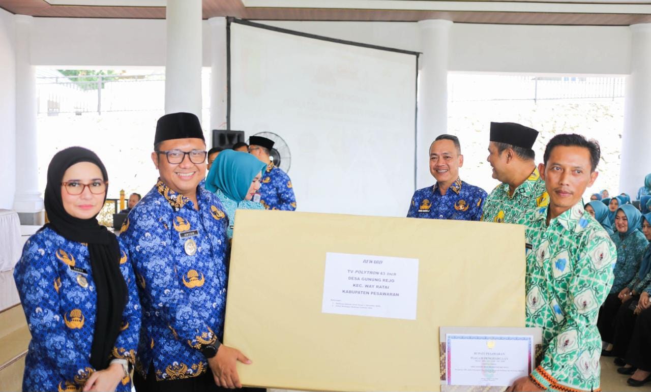 Pikiranrakyat lampung.com,Pesawaran-Bupati Pesawaran, Hj Nanda Indira B., S.E., M.M. memberi suport dengan memberikan hadiah TV kepada beberapa kepla Desa Sekabupaten Pesawaran agar kinerja kades kedepan lebih baik.