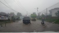 Banjir Setinggi Lutut di Depan Polsek Gedong Tataan, Aji Desak Pemerintah Pusat dan Provinsi Lampung Segera Bangun Drainase